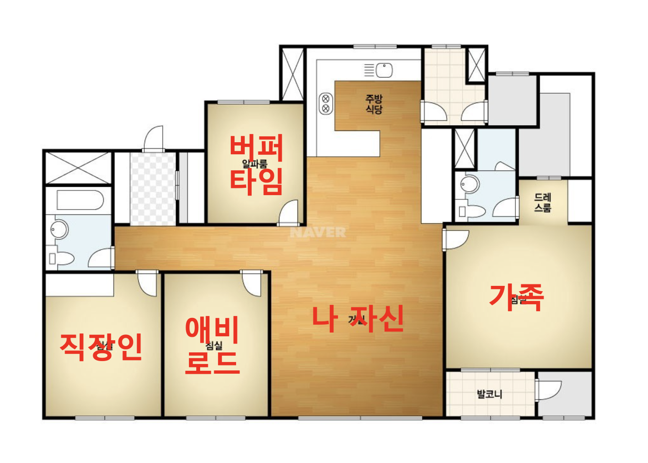 - 안방 : 가족 (육아, 가사)
