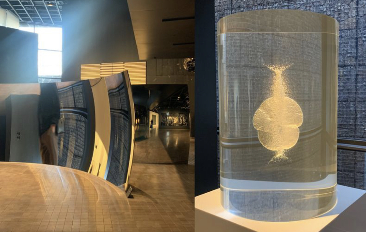 이 작품이 유일하게 유리에 둘러싸여 있지 않아서 반타 블랙을 자세하게 볼 수 있었어. 실제로 본 느낌은 “정말 깊이를 알 수 없는 심연을 바라보고 있는 듯한 기분”이었어. 빛도 다 흡수하는 물질이다 보니 약간 목탄같이 텁텁한 느낌도 있었던 것 같아. 정말 내 두 눈을 의심하게 되는 신기한 체험이었어🙄🙄