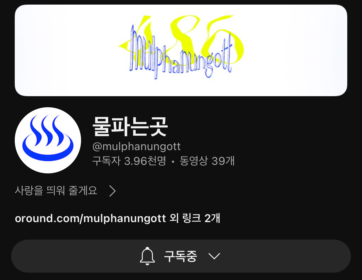 사실 이 채널 때문에 이 콘텐츠를 짰다고 해도 과언이 아니야. 바로 <물파는곳>! 구독자가 만 명도 안 되는 이 채널... 어떻게 알게 됐냐면 위대하신 알고리즘이 나에게 선사해주셨어...^^ 진짜 어느 날 갑자기 혜성처럼 날아와 내 취향을 저격해버린 채널이야.