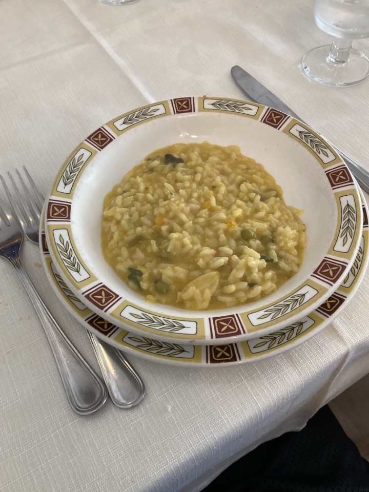 A가 본인의 할머니가 만든 뇨끼 다음으로 맛있다고 추천하는 라구 소스 뇨끼로 주문했다. 파스타 한 그릇 만으로는 아쉬우니 추가할 수 있는 메뉴가 없을지 서빙을 도와주는 아드님께 물어보니, 오늘은 야채 리조또가 있다며 원하면 한 접시를 반 나눠주신다고 하셨다(라고 말하고 거의 한 접시씩 내어주셨다).