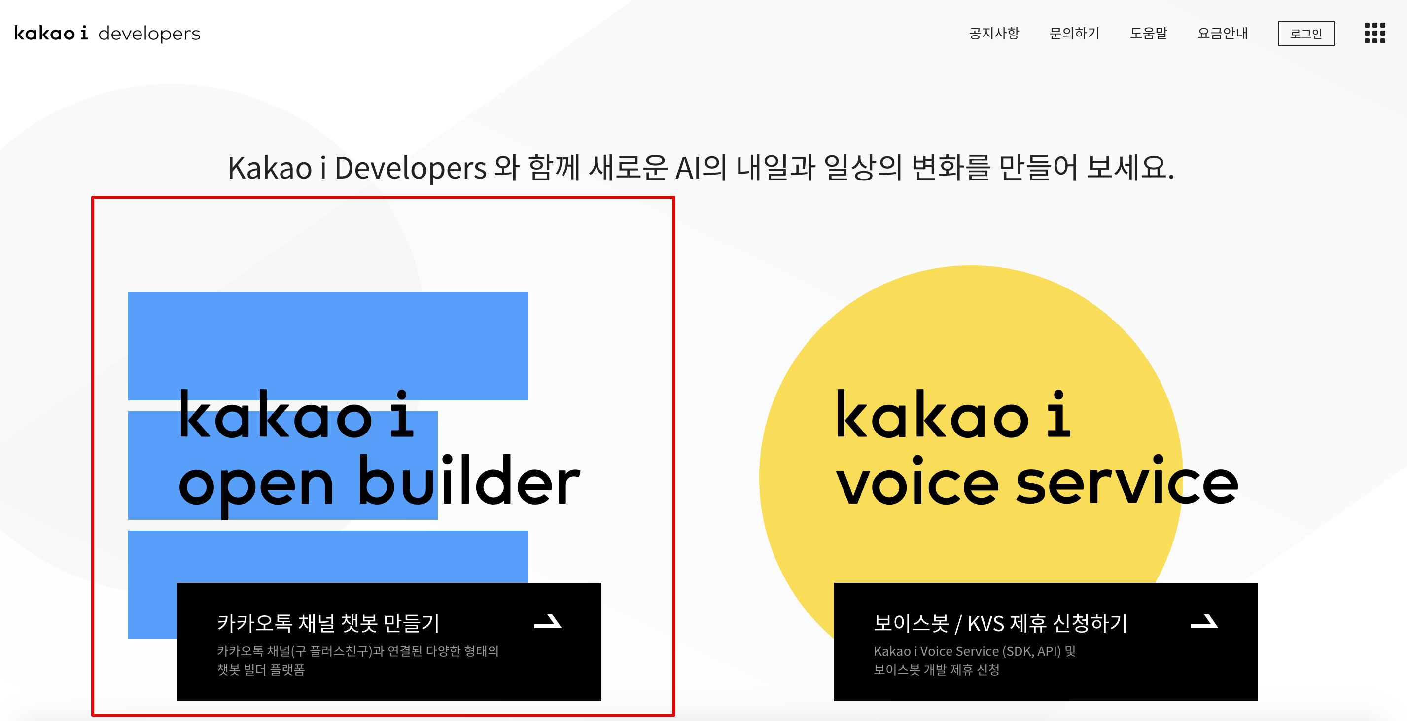 왼쪽의 kakao i open builder를 클릭해줍니다.