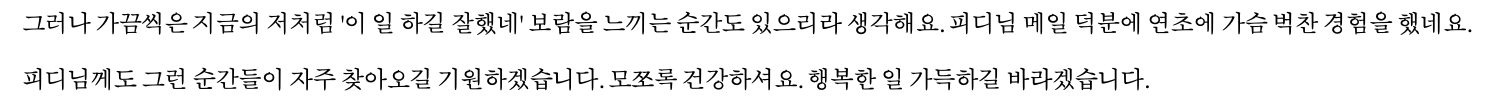 그렇게 기자님께 이런저런 이야기를 적은 메일을 보냈습니다. 그리고 생각보다 더 감사한 답장을 받았습니다. 허락을 구하지 못해 기자님의 답장을 공개하지는 못하겠지만 마지막 부분 정도만 이곳에 담아보려 합니다. (기자님, 괜찮겠지요?)