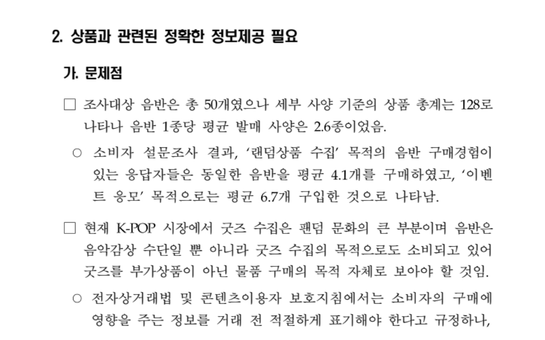 그럼에도 불구하고, 케이팝 음반의 판매량은 팬들의 반복 구입으로 달성되는 경우가 많다. 2023년 3월, 한국소비자원은 팬덤 마케팅 소비자 실태조사를 통해 팬들이 어떤 맥락으로 음반을 구매하는지 조사했다.