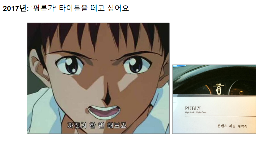 ๋๋ 2008๋ ํ๋ฐ๊ธฐ๋ถํฐ ํ๋ฆฌ๋์๋ก ์ผํ๋ค. ๋ค์ด๋ฒ ์๋น์คํ(2002~2005)๊ณผ ๋งค๊ฑฐ์งt(2006~2008), ์์ ์น์ง ์จ์ด๋ธ(2000~2016)๋ผ๋ ๋ค์ 'ํน์ดํ ๊ฒฝ๋ ฅ' ๋๋ถ์ ๊ทธ๋ญ์ ๋ญ ์ํฐํ ์ธ๋จผํธ ๋ถ์ผ์ ์นผ๋ผ์ ์ฐ๊ณ ๊ฐ์๋ ํ๊ณ , ์น ์๋น์ค์ ์ฝํ ์ธ ๋ฅผ ๊ธฐํํ๊ฑฐ๋ ์ฑ ๋ ์ฐ๋ฉด์ ๋จน๊ณ ์ด ์ ์์๋ค. ์๋ ๊ฝค ์ ์ด๊ณ ์์๋ค. ๊ทธ๋ฌ๋ ์ค์ ์ด๋ฐ ์ผ๋ค์ด ๋ฒ์ด์ง๋ค.