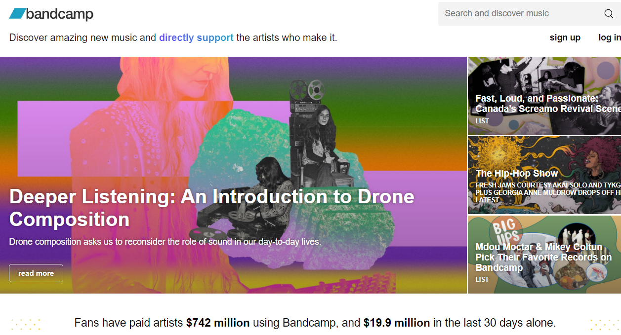 밴드캠프는 설립된지 5년 만인 2012년에 손익분기에 도달했고, 현재까지의 매출은 약 7천억원에 달합니다. 모두 팬들이 음악을 구매해 발생한 숫자인데요, 그 절반은 실물 음반과 MD 등에서 발생하고 있다네요. 현재 수십만 아티스트와 3000개 이상의 레이블이 사용하고 있습니다.