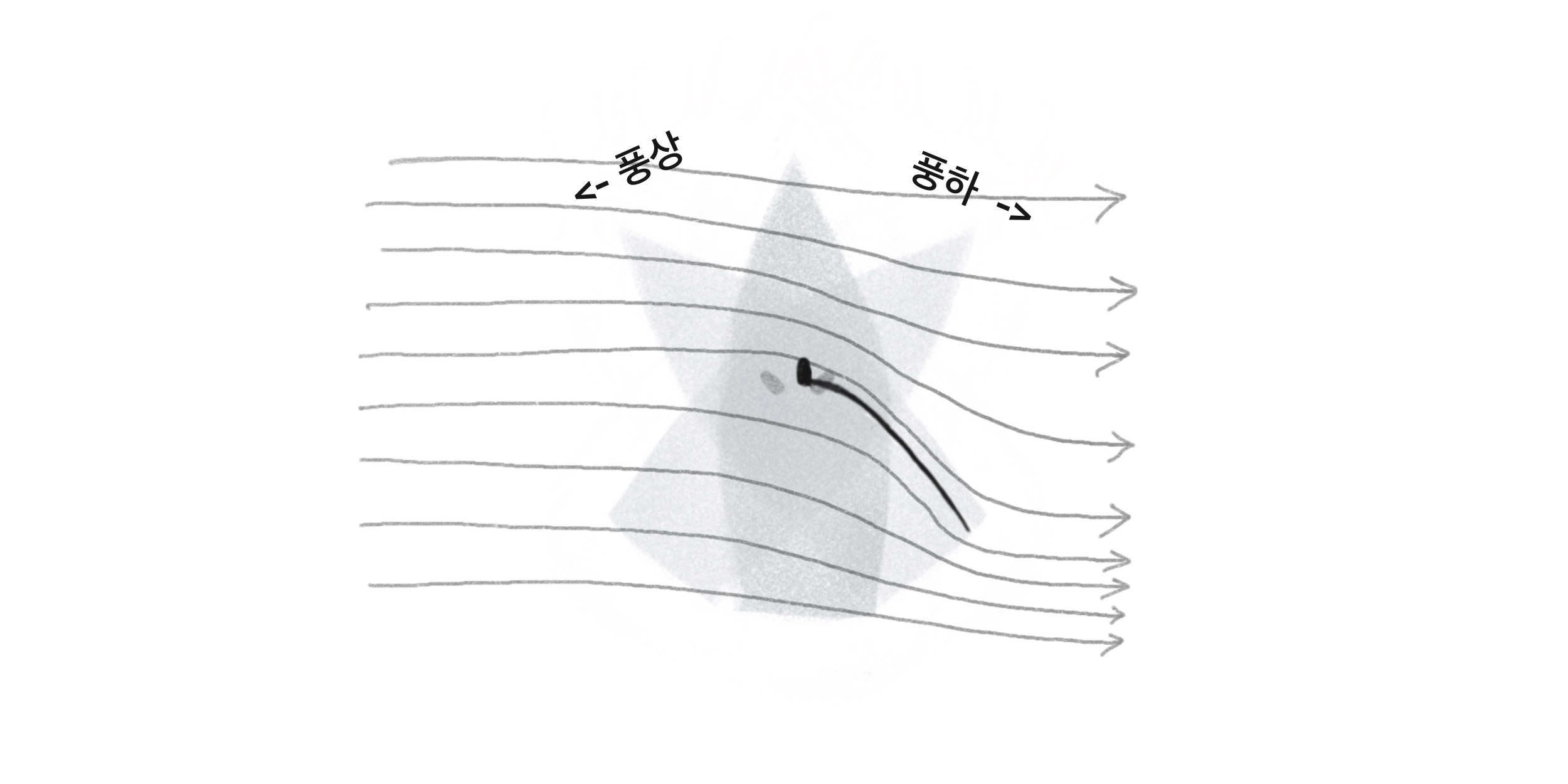 '바람 위쪽(풍상)'은 바람이 불어오는 방향 쪽, '바람 아래쪽(풍하)'는 바람이 불어 나가는 방향을 칭합니다 바람 부는 방향에서 좀 더 먼 쪽으로 뱃머리를 돌릴 때엔 '내려간다'라고 하고 바람 가까이로 접근할 때엔 '올라간다'는 표현을 쓰기도 합니다.