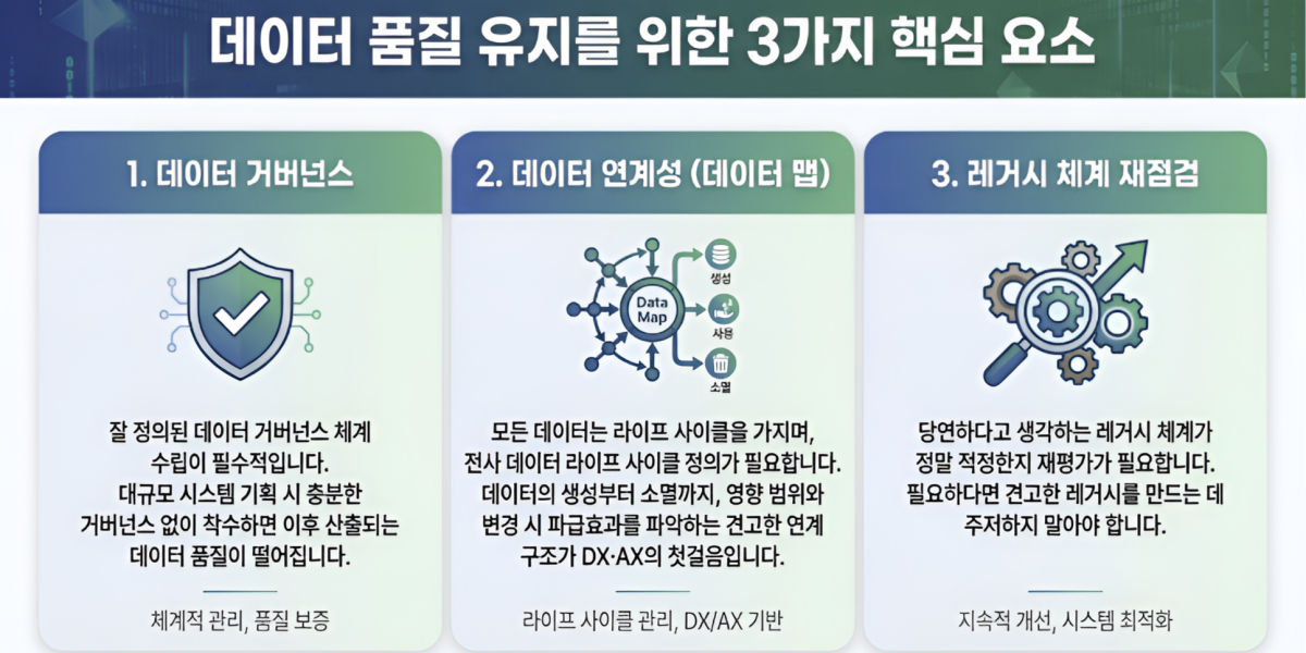 견고한 데이터 연계 구조요. 데이터의 생성과 소멸까지, 어디에 영향을 주고 변경되면 어떤 영향이 있을지를 보는 게 DX, AX의 첫걸음이라고 해요.