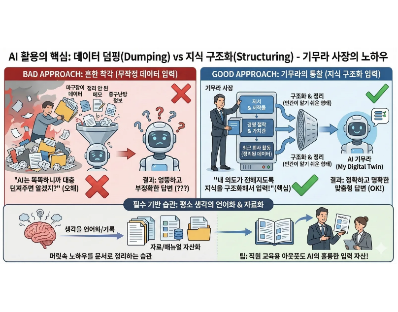 많은 사람이 AI에 데이터를 마구 넣으면 알아서 이해할 거라고 착각합니다. 하지만 기무라 사장의 생각은 달랐습니다.