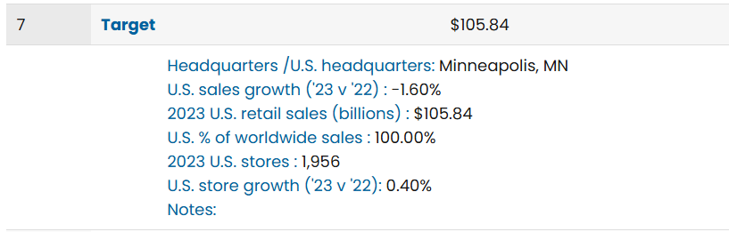 타겟은 패션, 가정용품, 식료품 등에서 트렌디한 제품과 세련된 매장 인테리어로 중산층 고객층에 인기가 많은 대형 쇼핑몰을 운영하고 있습니다.