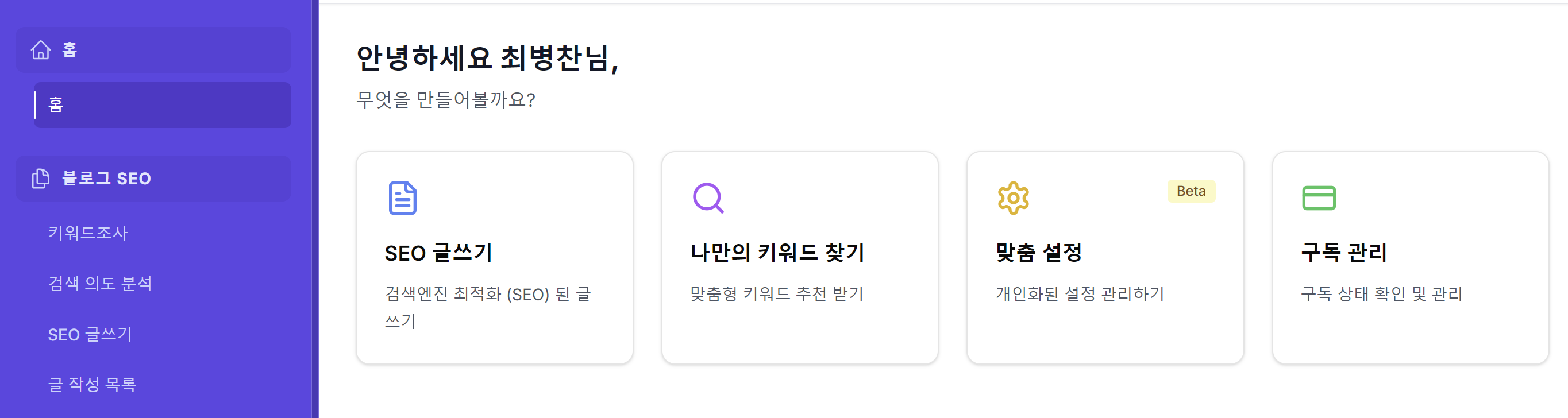 A: 현재는 SEO(검색엔진최적화) 블로그 콘텐츠 제작 분야에 집중하고 있지만, 점차 AI 마케팅 에이전트로 영역을 넓혀갈 계획입니다.