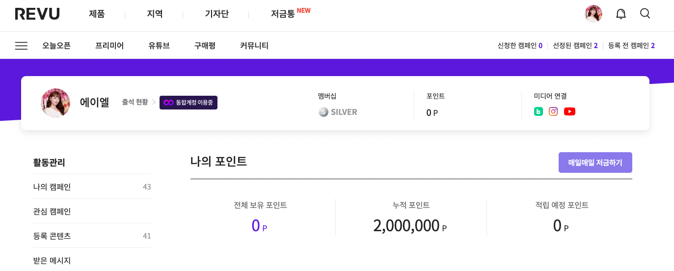 저는 현재 레뷰로만 2,000,000만원을 벌었습니다.