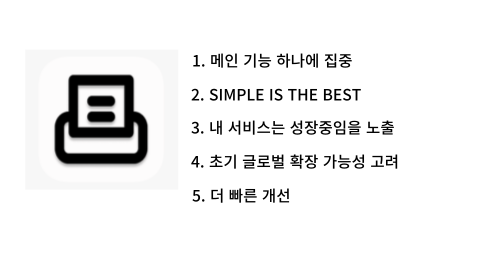 시작부터 여러 기능을 만들게 되면, 유저가 이 앱이 무엇인지 한 눈에 알기 어려워요.