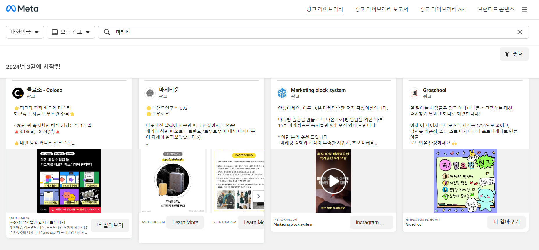 광고 라이브러리 검색하기