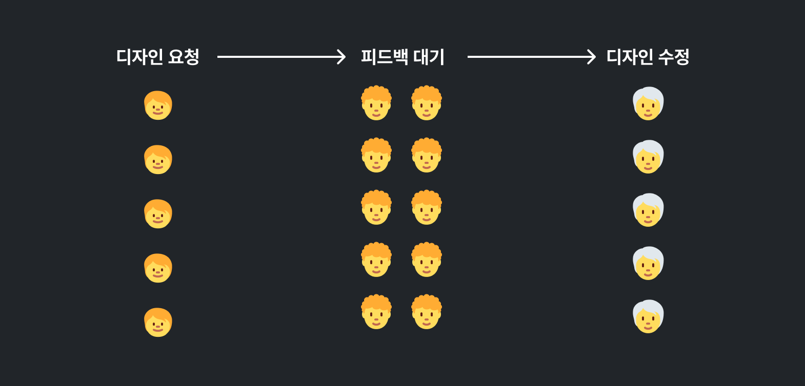 - 클라이언트의 대기 및 피드백 시간이 각자의 상황에 따라 다릅니다. 많게는 일주일이 걸리는 경우도 있죠.
