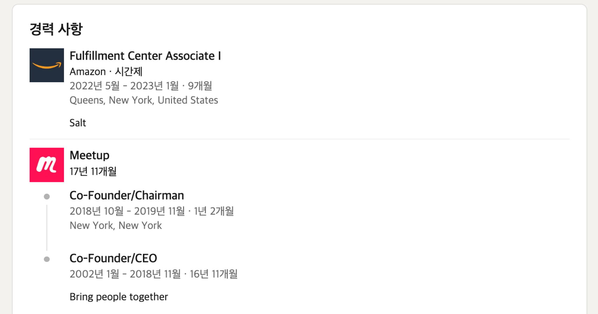 약 200억원 스타트업을 만들고 매각한 뒤, 맥도날드에서 아르바이트를 시작한 사업가가 있습니다. 그 이후, 다시 스타트업(Meetup)을 만들고, wework에 매각을 했죠. 그 다음에 다시 일반 노동자(아마존 물류 직원)가 되어 삶을 드라마틱하게 자주 바꾸는 사람이에요.