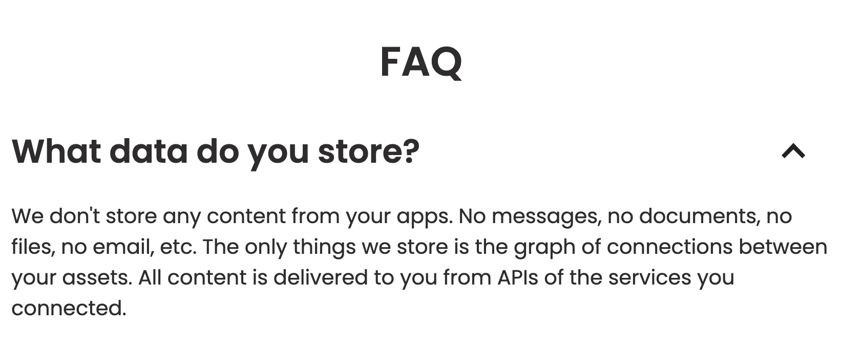 거의 모든 업무용 문서의 내용들을 한 곳에서 볼 수 있도록 모두 저장해주는 서비스입니다. 문서뿐만 아니라 파일, 링크, 대화까지도 모두 한 곳에서 볼 수 있도록 지원합니다.