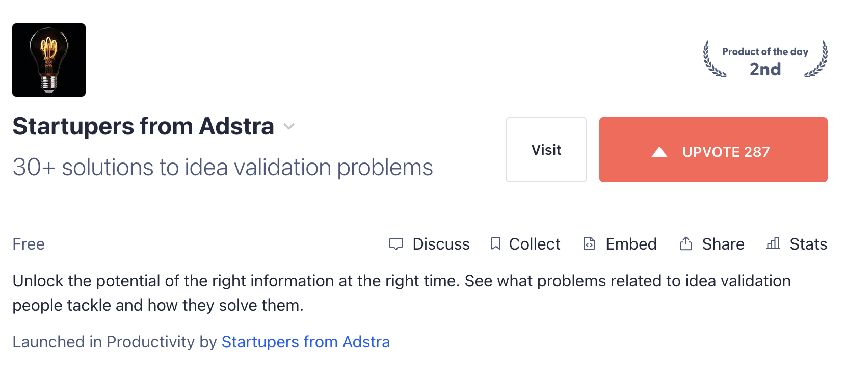 Product Hunt는 각종 IT 서비스들을 모아놓은 메이커 플랫폼입니다. 전 세계 400만 명이상의 회원 수를 보유하고 있습니다. 일간 ProductHunt는 매일매일 메이커들이 올리는 서비스들을 소개합니다.