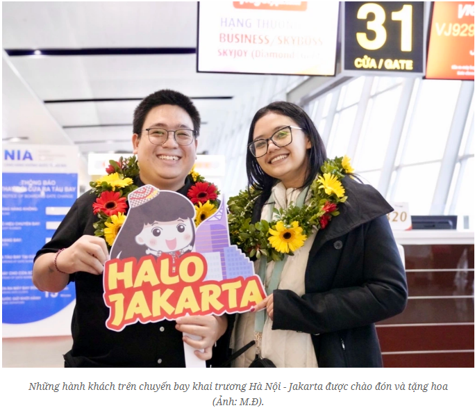 하노이에서 데니 압디(Denny Abdi) 주베트남 인도네시아 대사가 비엣젯과 공항 임원들과 함께 베트남 수도 하노이와 인도네시아 수도 자카르타를 연결하는 직항편 취항을 축하하고 탑승객들을 환영했습니다.