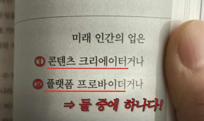 우리는 앞으로 누구나 콘텐츠 크리에이터 or 콘텐츠 프로바이더 둘 중 하나를 선택하고 살 것이라고 합니다. 넷플릭스와 유튜브를 이길 방도가 없는 99.9%는 크리에이터를 선택합니다.
