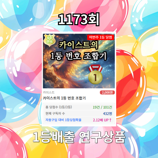 로또1174회 로또스페셜에서 추천하는 연구상품입니다.