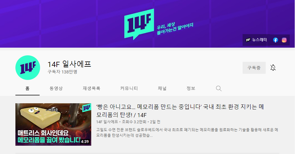 MBC는 TV 프로그램 외 자체제작 콘텐츠에 대한 입소문이 가장 먼저 나기 시작한 방송사야. 한 번쯤 들어봤을 텐데, 이들은 현재 유튜브에서 ‘14F(일사에프)’라는 채널을 운영하고 있어. 기존의 딱딱한 뉴스 형식을 벗어나 매주 최신 트렌드나 이슈를 친근하게 소개하는 콘텐츠가 이 채널의 주요 콘텐츠지. 이외에도 ‘소비더머니, 돈슐랭’ 등 소비자들이 평소 잘 아는 기업이나 제품에 대한 역사를 소개해주는 콘텐츠가 사람들에게 많은 인기를 얻고 있어 📈 이러한 인기에 힘입어 ‘소비더머니’는 따로 채널을 독립하기도 했어!