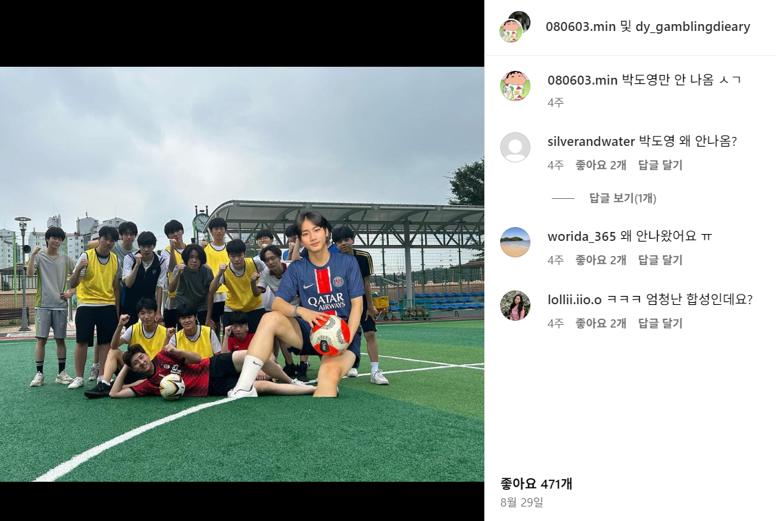 친구의 태그를 통해 축구에 참석하지 않는 모습이나, 돈을 빌리고 갚지 않는 모습들을 통해 간접적으로 도영군이 '어떠한 문제'에 빠졌다는 사실을 간접적으로 드러내고 있지.