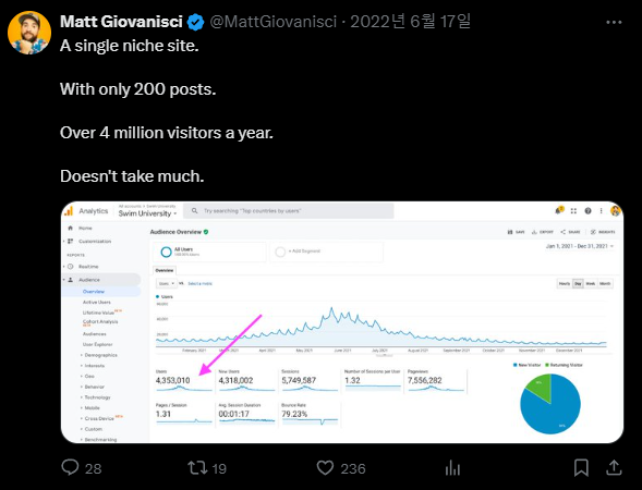Matt의 성공에는 SEO 전략도 큰 역할을 했습니다. 그는 사람들이 실제로 검색하는 키워드와 문구를 사용해 콘텐츠를 작성했죠.