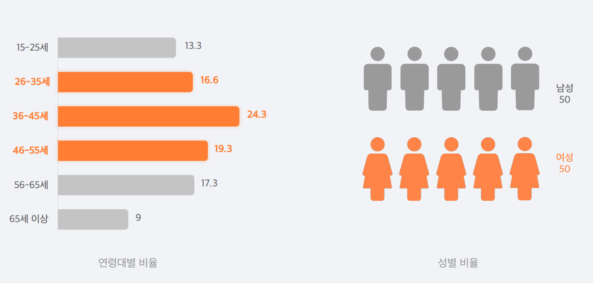 ์ ์ ์ ์ฐ๋ น๋๋ 10๋๋ถํฐ 60๋ ์ด์๊น์ง ํญ๋๊ฒ ๋ถํฌํ๊ณ ์๋๋ฐ, ๊ทธ ์ค 26์ธ ์ด์๋ถํฐ 55์ธ ์ดํ์ ์ ์ ๋ถํฌ๊ฐ ํนํ ๋์ ํธ์ด์ง. ํต์ฌ ์๋น์ธต ์ฐ๋ น๋ ์ ์ ์ ๋ถํฌ๊ฐ ๋์ ํธ์ด๊ธฐ ๋๋ฌธ์, ๋์ฑ ํจ๊ณผ์ ์ธ ๊ด๊ณ ์ฑ๊ณผ๋ฅผ ๊ธฐ๋ํด ๋ณผ ์ ์๋ ๋ถ๋ถ์ด์ผ๐ธ