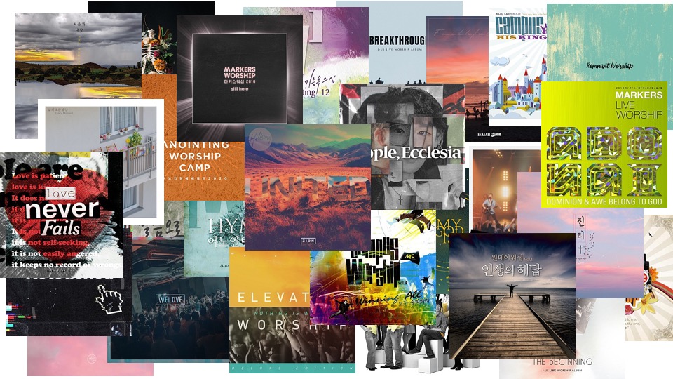 작년 한 해, 멜론 차트를 기준으로 하면, 꽃들도(마커스워십), 공감하시네 (위러브), 행복(하니)과 같은 찬양을 많이 들었다고 해. 물론 교회에서 불리는 찬양은 좀 다를 수도 있을 거야. 아래의 사진은 내가 좋아하는 앨범의 커버를 모아봤어. 여기서 몇 개의 앨범을 들어본 거 같아? 왼쪽의 "Love Never Fails"는 확실히 들어봤을 것 같고! 혹시 많이 모른다면, 찬양에 관심 좀 가져줘 ㅠㅠ