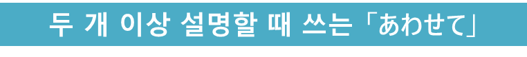 "아울러" 의 의미를 가진 「あわせて(併せて)」 는 한자 "병렬" 과 같이 둘 이상의 것을 나란히 설명 할 때 사용해요.