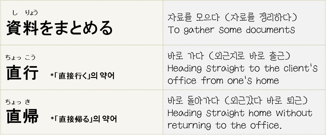 일본의 외근 현황표