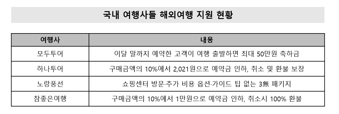 3분기 내로 주요 여행사 대부분이 무급휴직 및 휴업 지원금 소진 예정