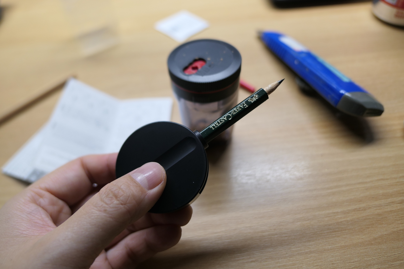 1, 2, 3 단계의 날이 있고, 순서대로 연필에 구멍을 뚫는 날, 뚫린 구멍에 잘 들어가게끔 다른 쪽 연필을 깎는 날, 지저분하게 깎인 부분을 정리해주는 날이 있습니다.