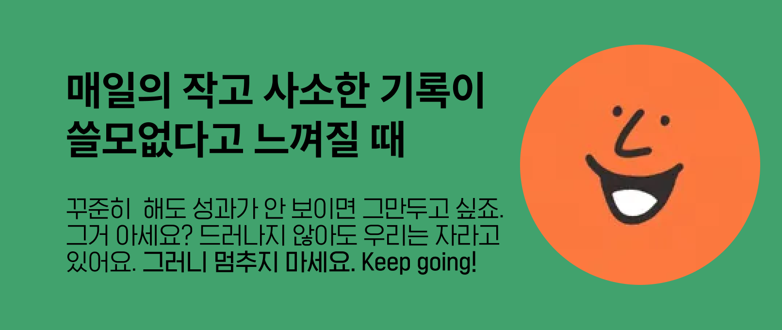 여러분은 오늘 어떤 문장이 가장 오래 남으셨나요? 그 문장이 무엇이든 이 말을 꼭 드리고 싶습니다. 여러분만의 달리기를 멈추지 마세요. 매일 1m씩이라도 달려보세요. 그럼 분명히 어느 순간, 마라톤을 완주한 여러분을 만나게 될 테니까요.