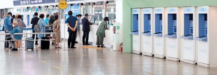 버스터미널 혹은 기차역의 승차권 매표소에는 승차권 자동 발매기보다 현장 발권 창구를 이용하는 줄이 더 깁니다.