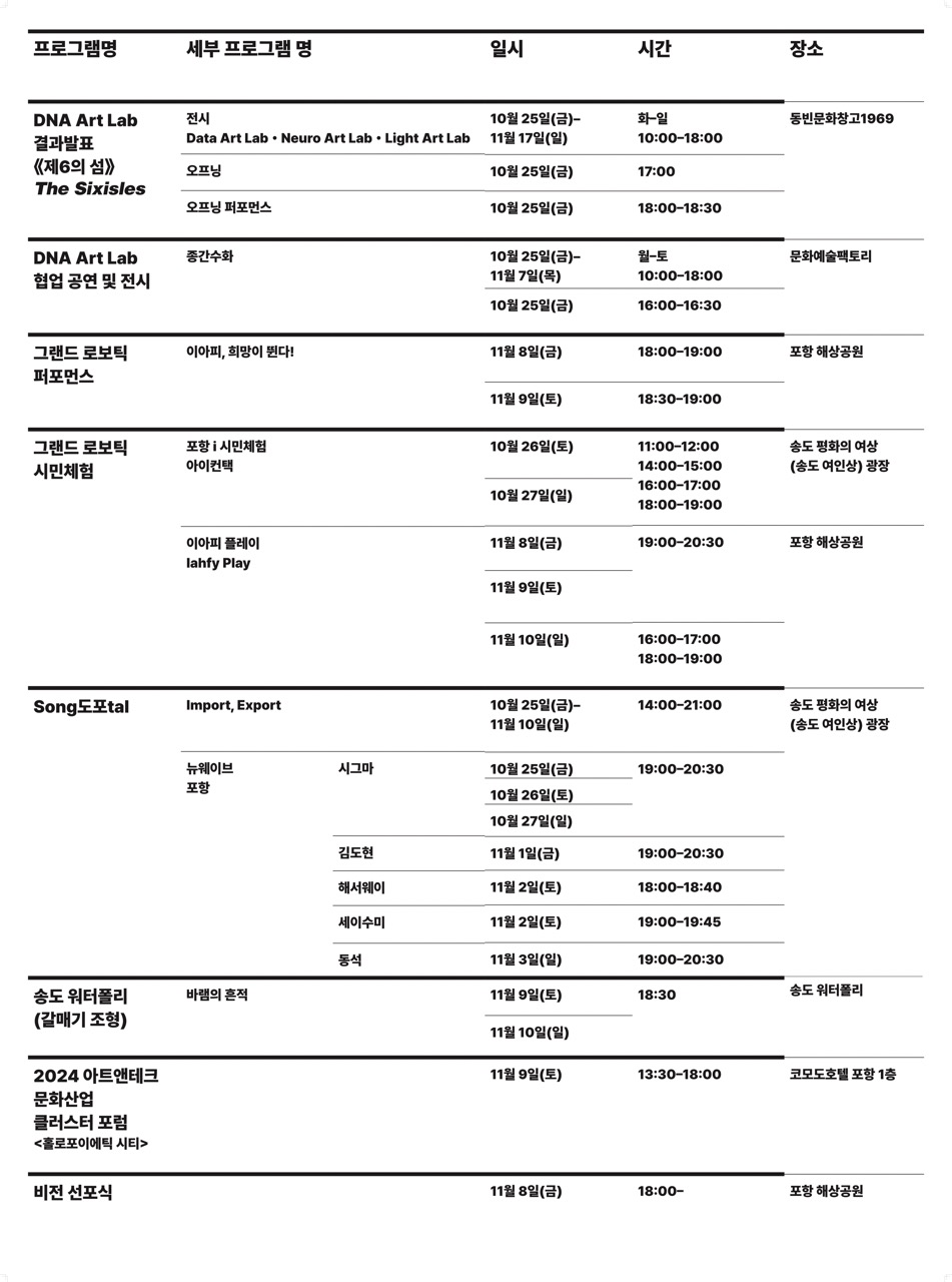 2024포항융합예술주간 세부 프로그램의 타임테이블을 공개합니다! ⏱