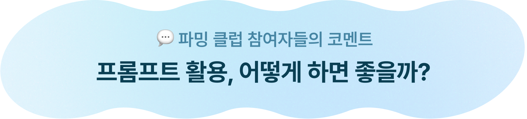 ๐ ํ๋กฌํํธ ํ์ฉ์ ๋ํ ํ๋ฐ ํด๋ฝ ์ฐธ์ฌ์๋ค์ ์ฝ๋ฉํธ
