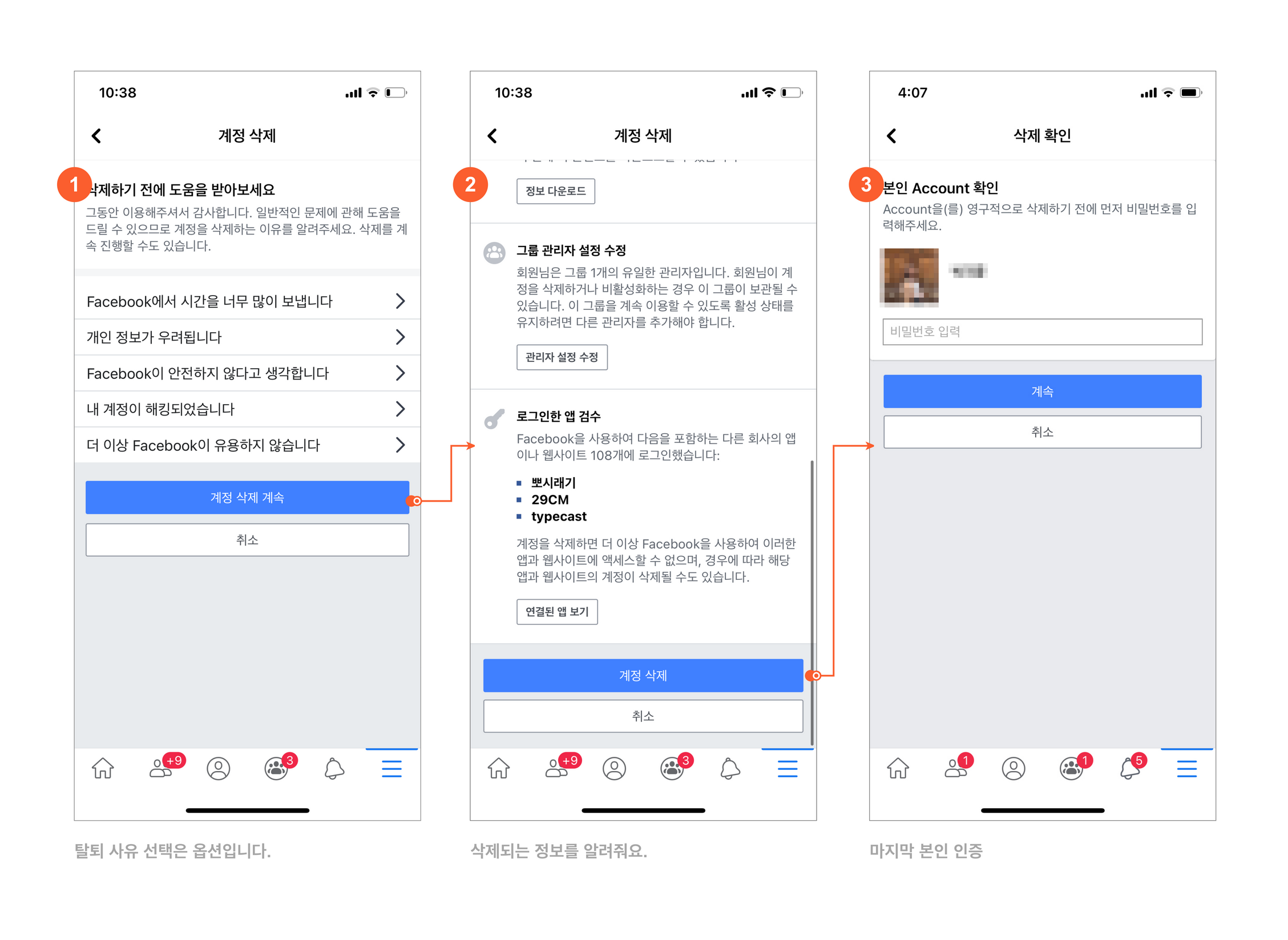[๊ณ์ ์ญ์ ๊ณ์]์ ๋๋ฅด๋ฉด ์ ์ญ์ ํ๋์ง, ๋์์ ๋ฐ์๋ณด๋ผ๋ฉฐ ์๋ฃจ์ ์ ์ ์ํฉ๋๋ค. ์ฌ๊ธฐ์ ํ๋ ์นดํ ๊ณ ๋ฆฌ๋ฅผ ์ ํํ๋ฉด ์ ํํ ์ด์ ๋ฅผ ๋ณด์ํ ์ ์๋ ํ์ด์ค๋ถ ๊ธฐ๋ฅ์ ์ค๋ช ํด์. ์ฌ๊ธด ๊ผญ ์ ํํ์ง ์๊ณ ๋ฐ๋ก [๊ณ์ ์ญ์ ๊ณ์]์ ๋๋ฌ๋ ๋ฉ๋๋ค! ์ญ์ ๋ฅผ ๋๋ฅด๋ฉด ์ด๋ค ์ ๋ณด๊ฐ ์์ด์ง๋ ์ง ๋ณด์ฌ์ฃผ๊ณ ํ๋จ์ [๊ณ์ ์ญ์ ]๋ฒํผ์ด ์์ต๋๋ค. ๋ณด๋ค ๋ณด๋ ์ฐธ ๋ง์ ์ ๋ณด๊ฐ ์์์ต๋๋ค. ๊ทธ๋์ SNS๋ฅผ ์ฝ๊ฒ ํํดํ์ง ๋ชปํ๋ ๊ฑธ๊น์ ใ ใ [๊ณ์ ์ญ์ ]๋ฅผ ๋๋ฅด๋ฉด ๋ณธ์ธ์ธ์ฆ์ ํ๊ณ ์ญ์ ํ๊ฒ ๋ฉ๋๋ค.