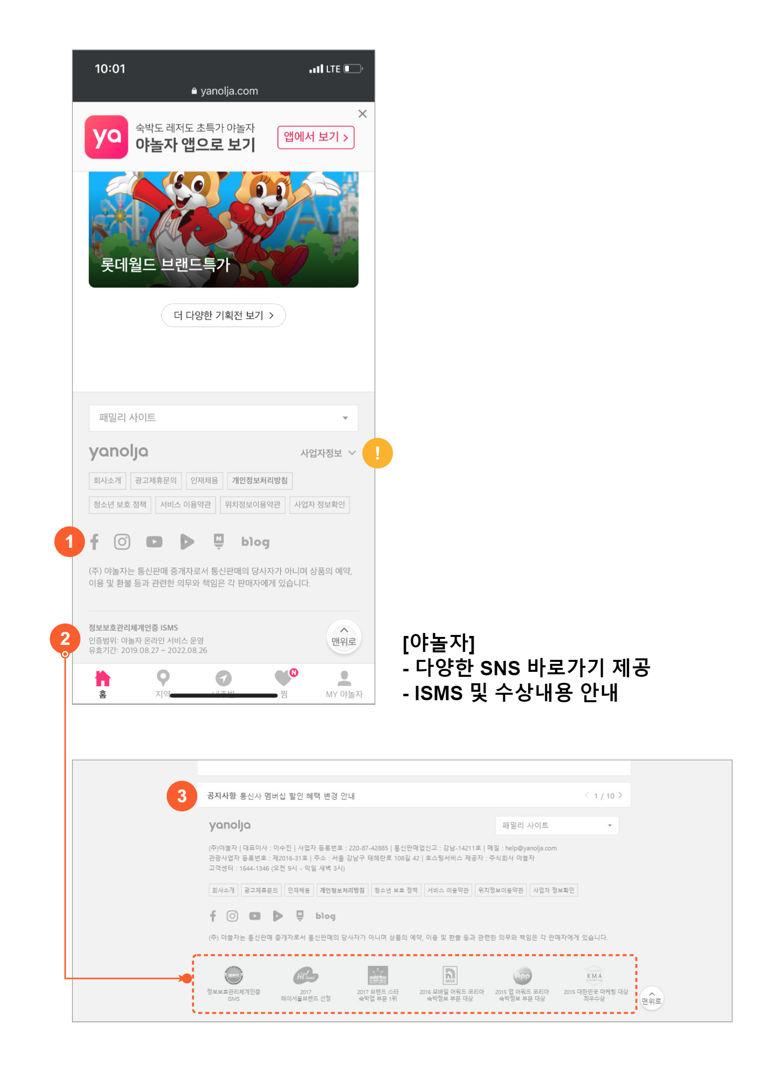 (2) ๋ชจ๋ฐ์ผ์ ํ์ ๋ ์ง๋ฉด ์ ๊ฐ์ฅ ๋ ธ์ถํ๊ณ ์ถ์ ํ ๊ฐ์ง ๋งํฌ๋ง ๋ ธ์ถํ ๋ถ๋ถ์ด ๋์ ๋์์ด์. PC์์๋ ISMS ์ธ์ฆ๋ฟ๋ง ์๋๋ผ ์์ ๋ฐ ์ค์ ์ ๋ ธ์ถํ์๋๋ฐ, ๋ชจ๋ฐ์ผ์์๋ ์ค์ ์ ์ ์ธํ ์ฑ ISMS๋ง ๋ ธ์ถํ์ฌ์ ์๋น์ค ๊ธฐํ ๋ฟ๋ง ์๋๋ผ ์์ ๊ด์ ์์๋ ์ ์ ํ์ฌ ๋ ธ์ถํ๋๋ก ํํ ํ๋ค๋ ์ธ์์ ๋ฐ์์ต๋๋ค. (๊ทธ๋งํผ ์ฝ์ง ์์ง์!)