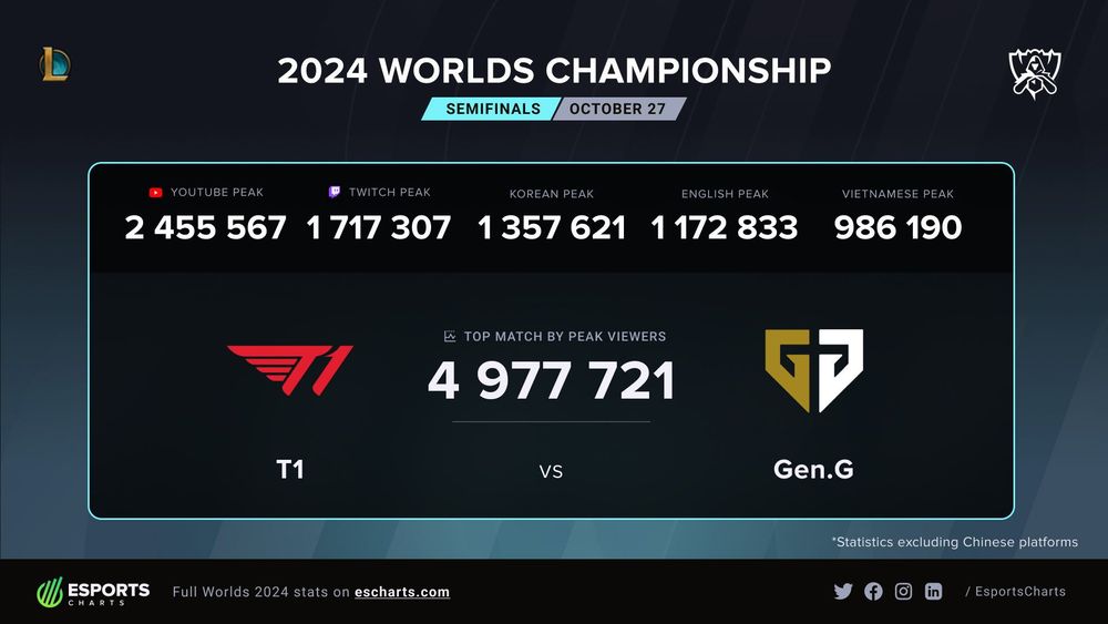24๋ ์๋จธ ๋ทฐ์ด์ญ๋ง ๋ณด๋๋ผ๋ ๊ทธ ์ํ์ ๋ํด ๋๊ปด์ง๋๋ค. 24๋ ์๋จธ ๊ธฐ์ค T1์ ์ฝ 70๋ง์ ๋ฌํ๋ ๋ทฐ์ด์ญ์ ๋ณด์ฌ์ฃผ์ง๋ง ๊ทธ 2์์ ํด๋นํ๋ ์ ์ง๋ 45๋ง ๊ทธ๋ฆฌ๊ณ ๊ผด์ฐ์ธ DRX๋ 27๋ง์ ๊ทธ์ณค์ต๋๋ค. ํนํ ์ด๋ค์ ๋ทฐ์ด์ญ ์์น์ ๋๋ถ๋ถ T1๊ณผ์ ๊ฒฝ๊ธฐ ๋๋ถ์ธ ๊ฒฝ์ฐ๊ฐ ๋ง์ต๋๋ค.