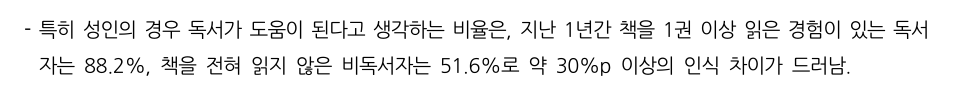 ๋ ์๊ฐ ์ถ์ ๋์์ด ๋๋ค๊ณ ์๊ฐํ๋๋ ์ง๋ฌธ์ ์๋ต์ ๋ค์๊ฐ ์ถ์ ๋์์ด ๋๋ค๊ณ ๋ต๋ณํ์ต๋๋ค. ๊ทธ๋ฆฌ๊ณ ์ฑ ์ 1๊ถ์ด๋ผ๋ ์ฝ์ ์ฌ๋ ์ค 88% ์ด์์ด ์ถ์ ์ค์ ๋ก ๋์์ด ๋์๋ค๊ณ ๋ต๋ณํ์ต๋๋ค.