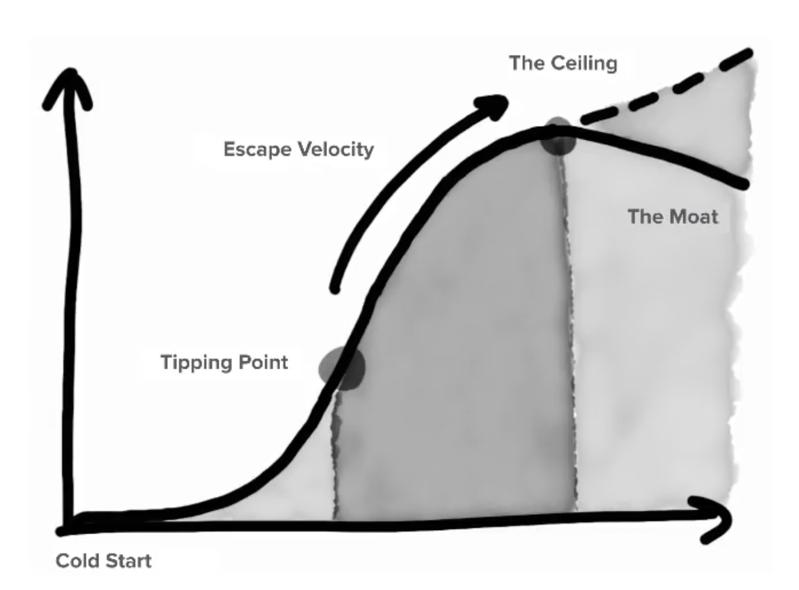 - Tipping Point: 네트워크 효과가 발생하여 급격한 성장이 시작되는 시점.