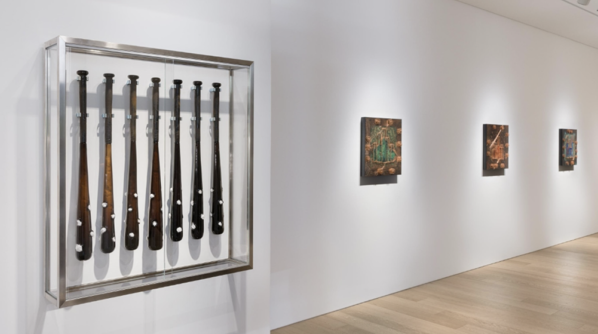 나리 워드(b.1963)는 자메이카에서 태어나 12세에 미국으로 이주했다. 현재는 할렘을 기반으로 활동하고 있는데, 그의 작품에 쓰이는 재료 역시 미국 북부의 할렘에서 수집한 것들이다. 그리고 이 사물들을 전복시켜 새로운 의미를 부각시킨다. 특히 그가 레디메이드를 통해서 만들어내는 이미지는 공동체의 회복, 돌봄의 의미를 가진다. 특히 2011년에 선보인 메디신 배츠(Medicine Bats)와 2024년에 새롭게 파란색으로 선보이는 메디신 배츠(파랑)에서 야구 배트는 폭력과 대항하는 오브제를 표현하는 동시에 목화솜을 붙여 ‘솜방망이’와 같은 재맥락, 목화 재배 농장을 통한 강제 노동의 맥락을 작품 속으로 가져온다. 또한 제목에서 보여주듯 약(Medicine)은 좋은 의미로도 나쁜 의미로도 미국 사회에 깊숙히 침투해있는 다양한 ‘약’의 맥락을 연상시킨다. 그의 작품 안에서 ‘둔기’는 폭력의 함의를 벗겨내기 위해 노력한다. 그러나 여전히 눈에 보이는 방망이는 진열된 무기로 보인다. 다만 이러한 재맥락화 속에서 나리 워드의 작품은 갈등 보다는 앞으로 화합되는 세계를 지향한다. 우리는 물리적으로 자신이 속한 지역(Neighborhood)을 벗어날 수 없다. 그렇다면 미래로 나아가기 위해서는 과거를 직시하고, 솔직하게 받아들이고 다시금 앞으로 나아가야만 한다. 나리 워드의 작업은 장소 특정적인 미술의 성격을 지니고 있지만, 새삼 보편적 가치를 보여준다. 할렘으로부터 온 평화의 메시지다.
