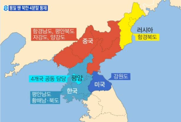 ์ ๋ ์ ๊ทธ๋ฆผ์ ๋ณด๊ณ ์๋ฆ์ด ์ข ๋์๋๋ฐ์. ๋ฐ๋ก 2015๋ '์์ ๋ฐ๋๊ทธ๋ฃน'์ด ๊ณต๊ฐํ ๋ถํ ๋ถ๊ดด ์๋๋ฆฌ์ค์ ๋๋ค. ์ด ์๋๋ฆฌ์ค๋ 2009๋ ์ค๋ฐ๋ง ๋ํต๋ น ์ฌ์ ์์ ์ค๊ตญ์ด ๋ฏธ๊ตญ ์ธก์ ์ ์ํ ๊ฒ์ผ๋ก ์๋ ค์ ธ ์๋๋ฐ์. ๋ณด์๋ ๊ฒ์ฒ๋ผ ์ค๊ตญ์ด ๊ฐ์ฅ ๋์ ํจ๊ฒฝ๋จ๋, ์๊ฐ๋, ์๊ฐ๋, ํ์๋ถ๋๋ฅผ, ๋ฏธ๊ตญ์ ๊ฐ์๋๋ฅผ, ๋ฌ์์๋ ํจ๊ฒฝ๋ถ๋๋ฅผ, ์ฐ๋ฆฌ๋๋ผ๊ฐ ํ์๋จ๋, ํฉํด๋๋ฅผ, ํ์์ 4๊ฐ๊ตญ ๊ณต๋ ํต์ ์ง์ญ์ผ๋ก ๊ทธ๋ ค์ ธ ์์ด์.